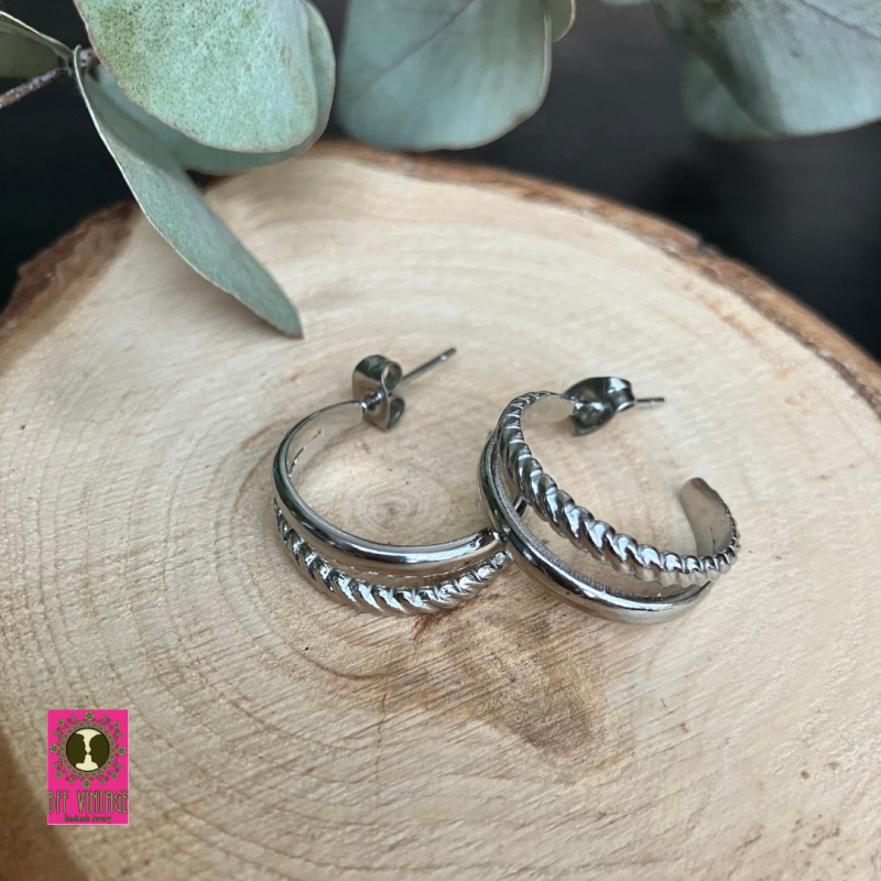 Dubbele oorbellen met reliëf